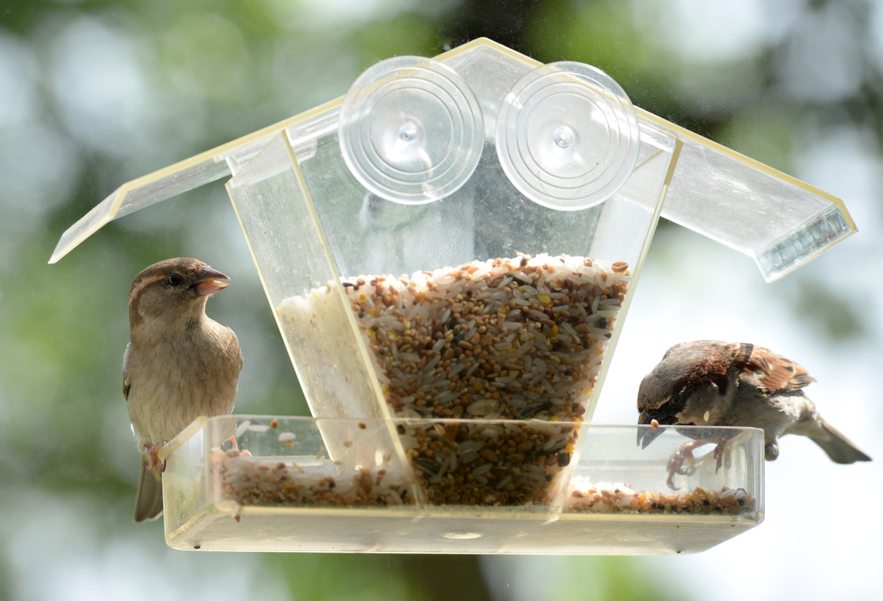 - Add a suction-cup bird feeder to a window or windows of your dwelling. Fill them with different varieties of birdseed: black oil sunflower birdseed, black thistle birdseed, wild songbird birdseed.