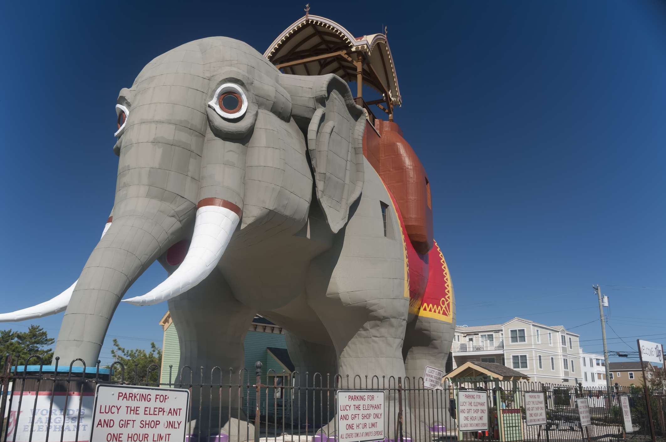 Lucy the Elephant is a 6 story elephant crafted by James V. Lafferty of wood and tin, located in Margate, New Jersey. Constructed in 1882, this structure stands 6 stories high at 65 feet tall. Visitors can walk around the outside, inside, as well as stop by the local gift shop. Restoration efforts to preserve the art piece are ongoing, but she remains open to the public still!