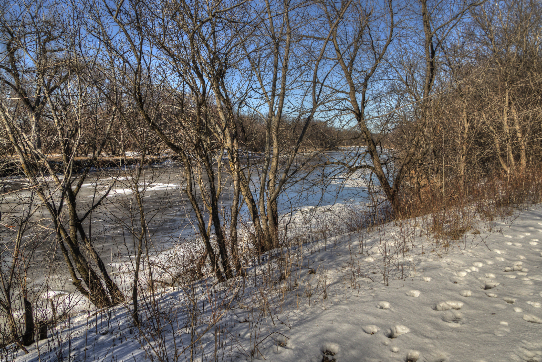 Farm Island Recreation Area offers 3 loops along the Exploration Nature Trail for snowshoeing and cross country skiing and has a warming shelter if you need a break.
