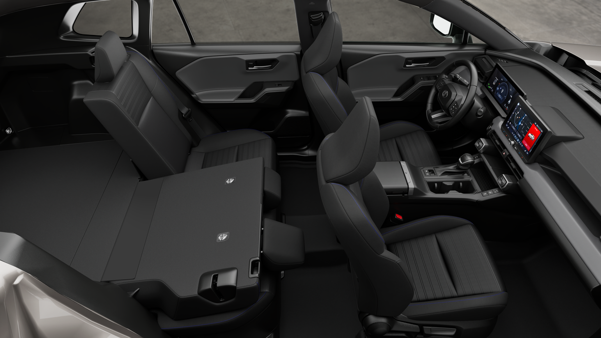 • 60/40 split reclining fold-flat rear seat with center armrest and cup holders